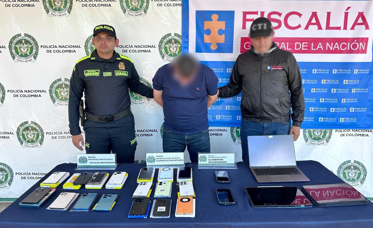 En un exitoso operativo conjunto entre la Policía Nacional y la Fiscalía General de la Nación, fue capturado en flagrancia un hombre conocido como “KIKE”, señalado de ser un reconocido receptador de equipos móviles en la ciudad de Neiva. El procedimiento, llevado a cabo en la comuna 2 de la capital huilense, resultó en la incautación y recuperación de varios dispositivos tecnológicos de alta gama, que al parecer habían sido sustraídos de manera ilícita.