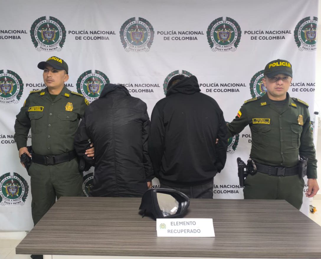 La Policía Nacional de los colombianos, a través de uniformados de la patrulla de vigilancia 28, logró la captura en flagrancia de dos hombres señalados de hurtar un espejo retrovisor delantero avaluado en 1.000.000 de pesos, en hechos ocurridos en el sector de la avenida Boyacá en Pasto.