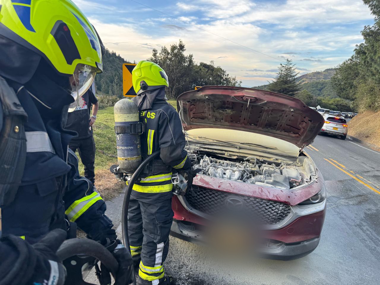 La emergencia se registró alrededor de las 5:35 de la tarde en la vía Panamericana, a la altura de Daza, debido al incendio de un vehículo particular.