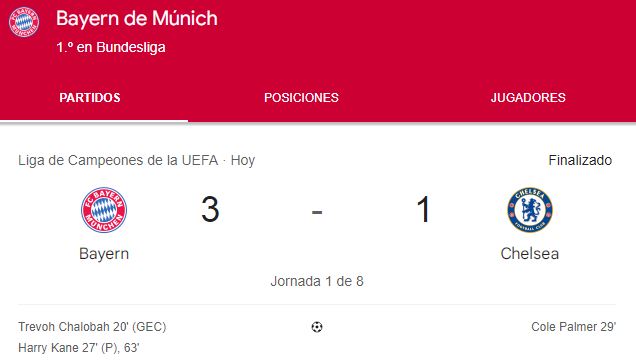 Bayern Múnich comenzó con pie derecho su participación en la Champions League 2025/26 al vencer 3-1 al Chelsea como local en el Allianz Arena. El conjunto alemán impuso su jerarquía durante todo el encuentro, aunque el partido tuvo momentos de equilibrio.