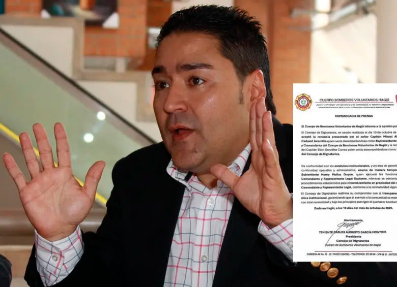 El Cuerpo de Bomberos Voluntarios de Itagüí anunció la aceptación de la renuncia de Misael Alberto Cadavid Jaramillo, quien se desempeñaba como comandante y representante legal de la institución. La decisión se tomó en medio del escándalo de corrupción que involucra contratos suscritos entre el cuerpo de socorro y el Área Metropolitana del Valle de Aburrá.