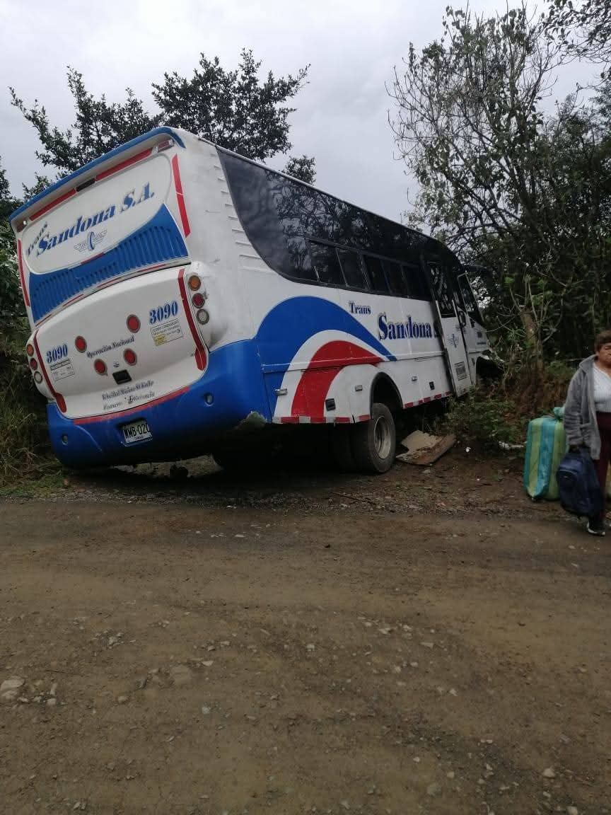 Un gran susto vivieron los pasajeros y el conductor del bus 3090 de la empresa Trans Sandoná, en la madrugada de este martes 14 de octubre, cuando el vehículo sufrió un accidente en la vía que conduce hacia Pasto.