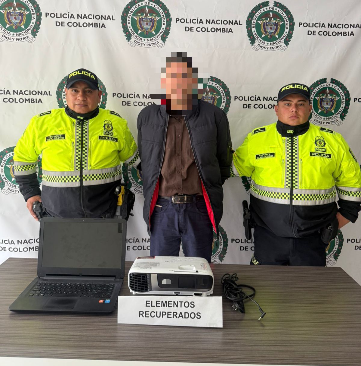 En el operativo un hombre de 52 años de edad, fue capturado en flagrancia tras ingresar a un centro universitario y sustraer equipos tecnológicos, entre ellos un computador y un proyector de video beam