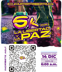 El próximo domingo 14 de diciembre de 2025, en la ciudad de Pasto (departamento de Nariño), se llevará a cabo la Carrera 5K Por la Libertad y la Paz, con salida desde la Plaza del Carnaval.