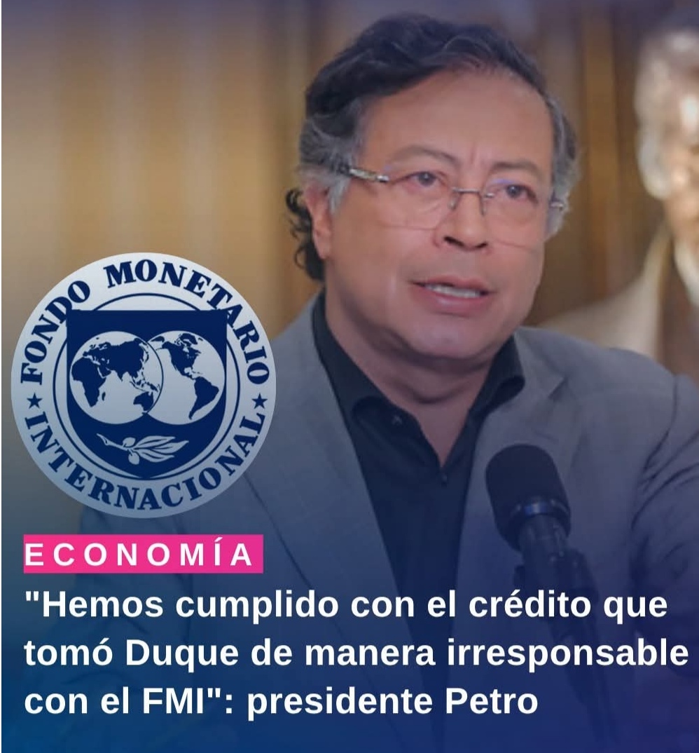 El presidente Gustavo Petro anunció que Colombia ha saldado la deuda adquirida con el Fondo Monetario Internacional (FMI) durante el gobierno de Iván Duque. Según Petro, el país pagó USD $5.000 millones en los últimos tres años y alcanzó reservas internacionales por USD $65,5 mil millones, lo que permitió cancelar la Línea de Crédito Flexible del FMI.