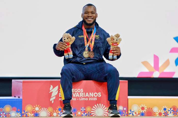 Además, Juan Camilo Martínez, en los 79 kilogramos y Luis Quiñones, en los 94 kg., sumaron tres medallas de plata y una de bronce, haciendo que este deporte subiera al podio a los seis atletas que tuvo en acción en la jornada de este lunes. A falta de un día para terminar las competencias, Colombia y Venezuela están empatados con 11 oros y ocho platas cada uno.