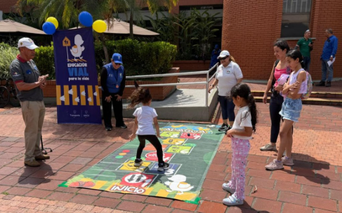 Durante la actividad, los niños participaron en juegos, dinámicas y actividades lúdicas que recrearon situaciones cotidianas en las vías: cómo cruzar correctamente una calle, respetar semáforos y señales de tránsito, y el uso del cinturón de seguridad.