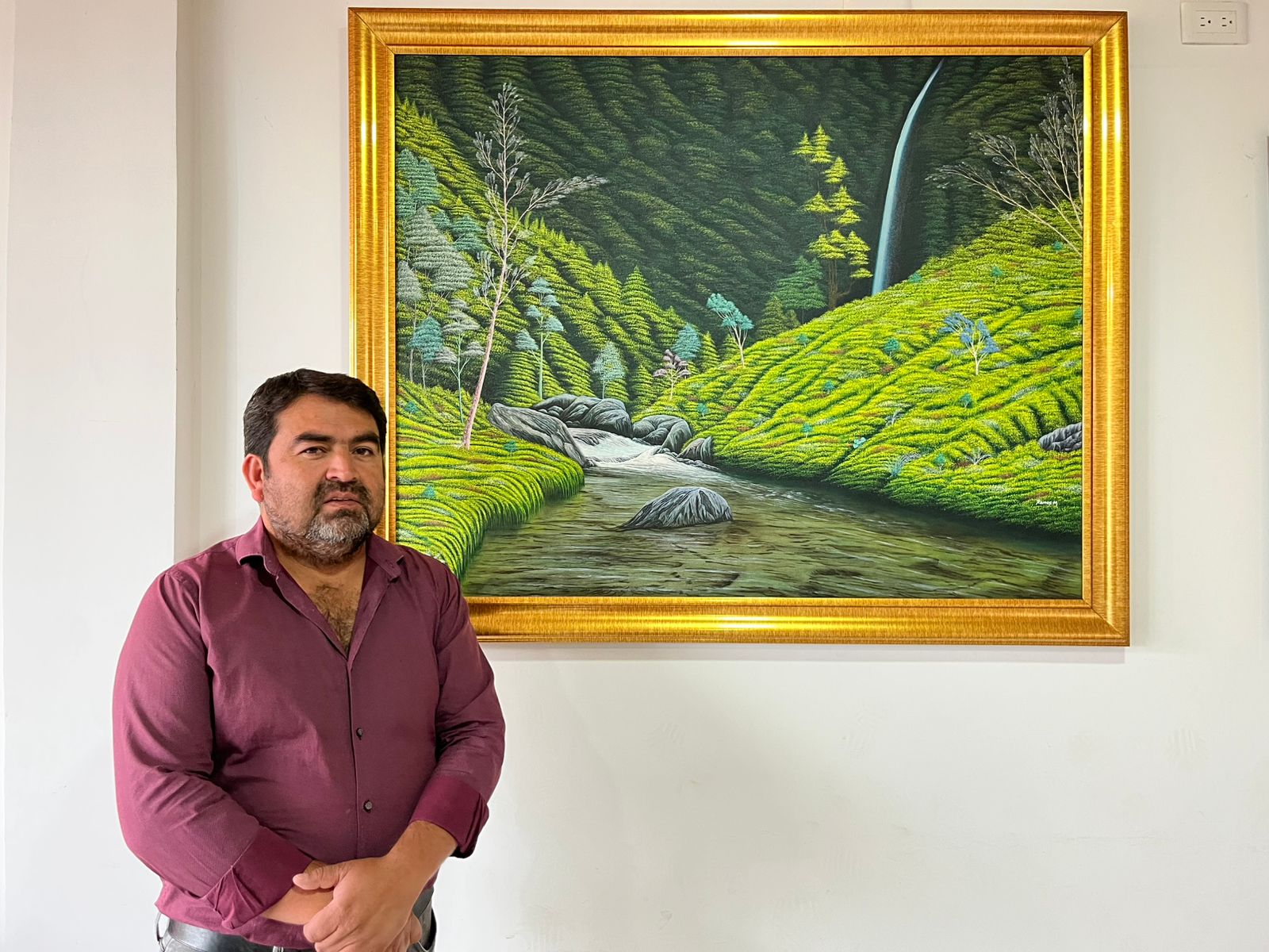 En paralelo, ha consolidado una sólida trayectoria artística de más de 30 años como dibujante y pintor autodidacta, con dominio en técnicas como el óleo, acrílico y acuarela. Ha participado en numerosas exposiciones regionales y departamentales, siendo ganador de varios primeros puestos en los Salones de Arte Galeras y la Muestra Regional de Artes Plásticas de La Florida.