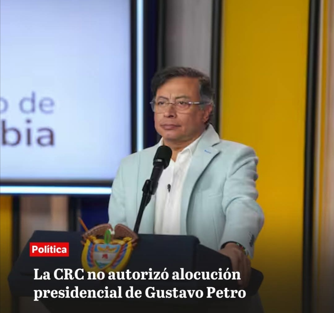 La Comisión de Regulación de Comunicaciones (CRC) negó la solicitud del presidente Gustavo Petro para transmitir una alocución presidencial en televisión abierta, argumentando que no se cumplieron los criterios de urgencia, uso excepcional y delimitación temática.
