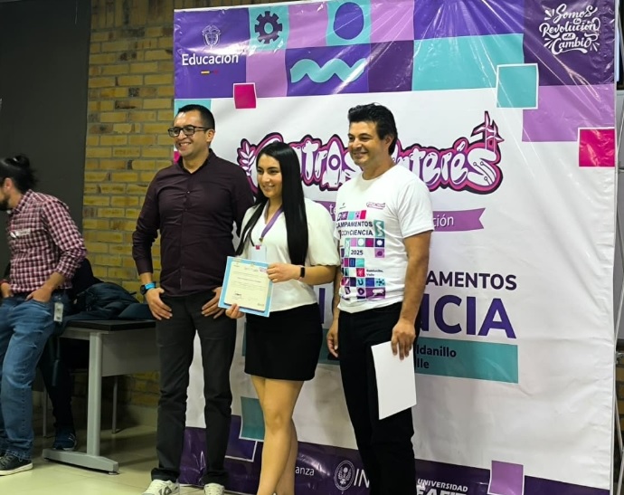 La participación destaca no solo el compromiso y entusiasmo de los estudiantes, sino también la dedicación de la docente Mónica Alejandra Fuertes Hernández, quien ha liderado con pasión este proceso formativo. Así mismo, se reconoce la valiosa orientación del tutor Carlos Alberto Gómez Rosero, encargado de acompañar al grupo en el área de programación informática.