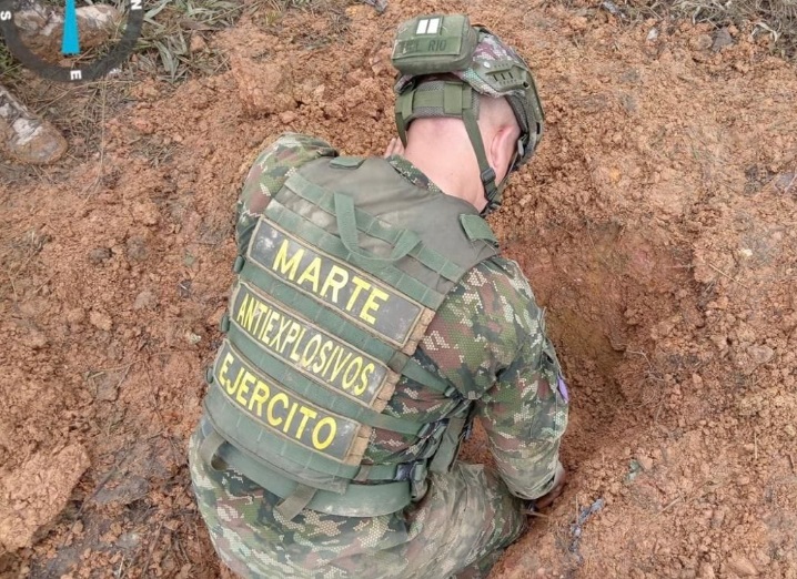 En total, fueron detectados siete artefactos explosivos improvisados que, según información militar, tenían como objetivo frenar el avance de las tropas y poner en riesgo a la población civil que habita este territorio. El hallazgo se produjo en un sector de difícil acceso, frecuentemente utilizado por los grupos armados ilegales para instalar trampas y fortalecer sus rutas de movilidad.