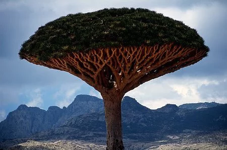 En la isla de Socotra, en Yemen, crece un árbol extraño llamado drago, conocido porque de su corteza brota una resina roja que parece sangre. Desde tiempos antiguos se le atribuyen propiedades mágicas y medicinales.
