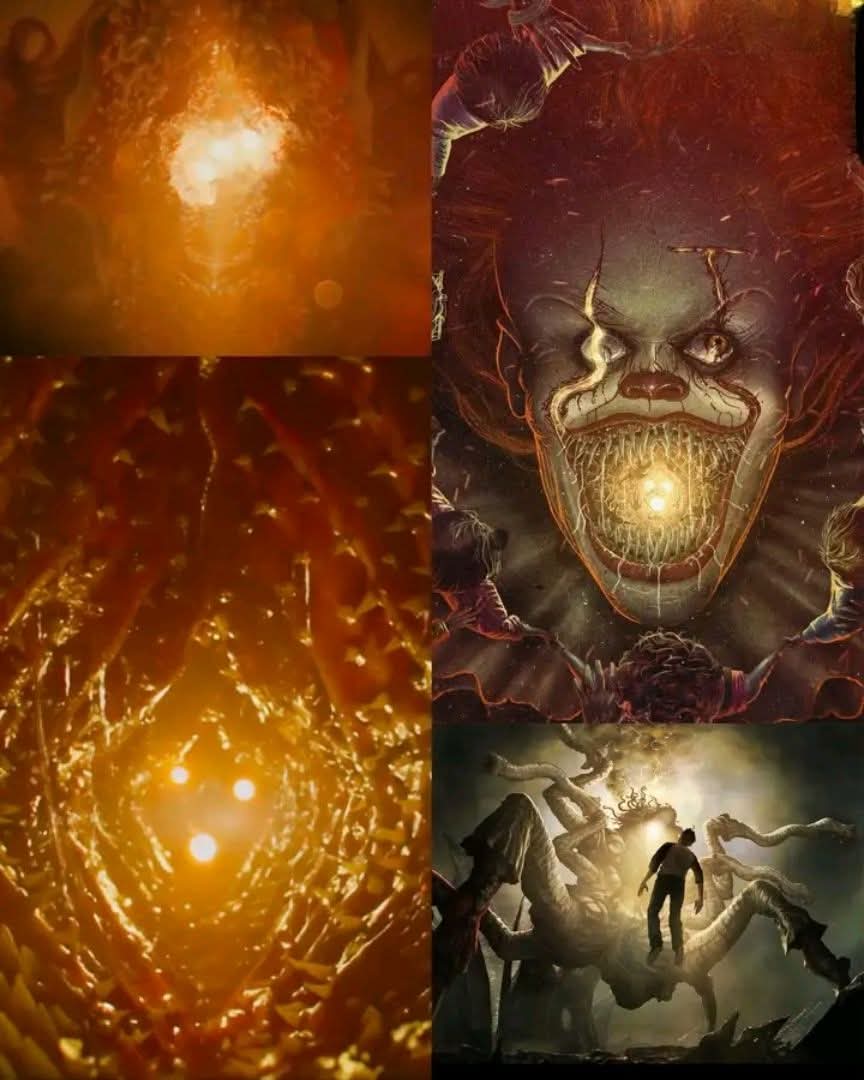 🚨: ESA LUZ ES LA FORMA REAL DE IT Cuando It abre la boca y alumbra así: estás viendo los Deadlights, su forma real, una energía cósmica que la mente humana no soporta.Si los miras directamente tu cerebro se desconecta de la realidad, tu cuerpo queda flotando como muñeco sin vida y tu conciencia se queda atrapada ahí adentro por el mismo It.En los libros… Stephen King escribió a Pennywise como el disfraz, pero los Deadlights son el verdadero monstruo.