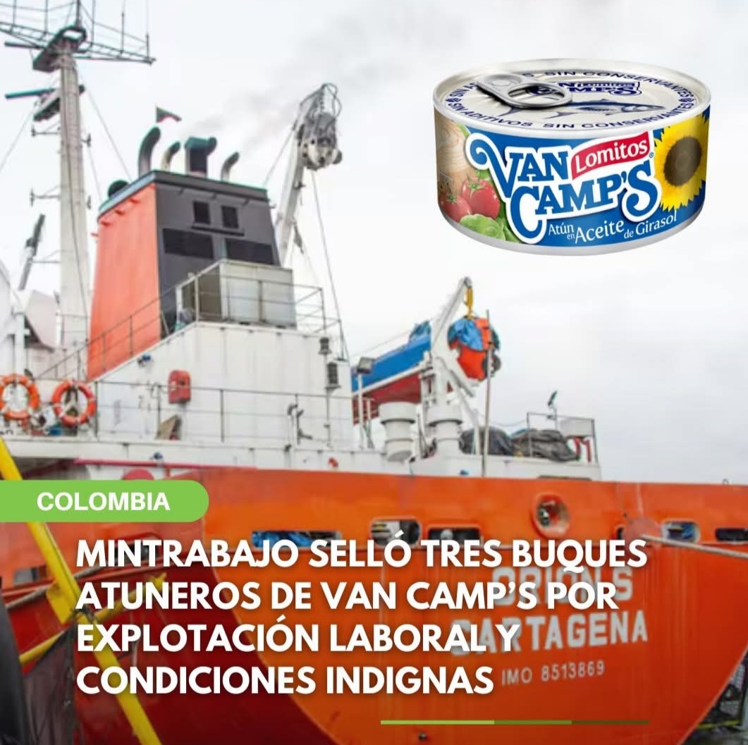 El Ministerio del Trabajo de Colombia descubrió una red de explotación laboral en tres embarcaciones de la empresa Seatech International Inc., operadora de la marca Van Camp’s. Más de 60 trabajadores extranjeros fueron encontrados laborando en condiciones precarias, sin contrato ni seguridad social.