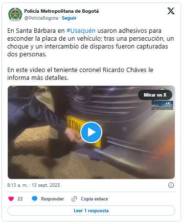 Durante la persecución, el vehículo de los sospechosos colisionó con otro automotor, lo que permitió a la Policía interceptarlos. En medio de la fuga, los delincuentes dispararon contra las patrullas, aunque afortunadamente nadie resultó herido. El teniente coronel Ricardo Cháves, comandante de la Estación de Usaquén, explicó que el choque inmovilizó el carro, facilitando la captura de dos de sus ocupantes. Sin embargo, tres de los presuntos criminales lograron escapar.