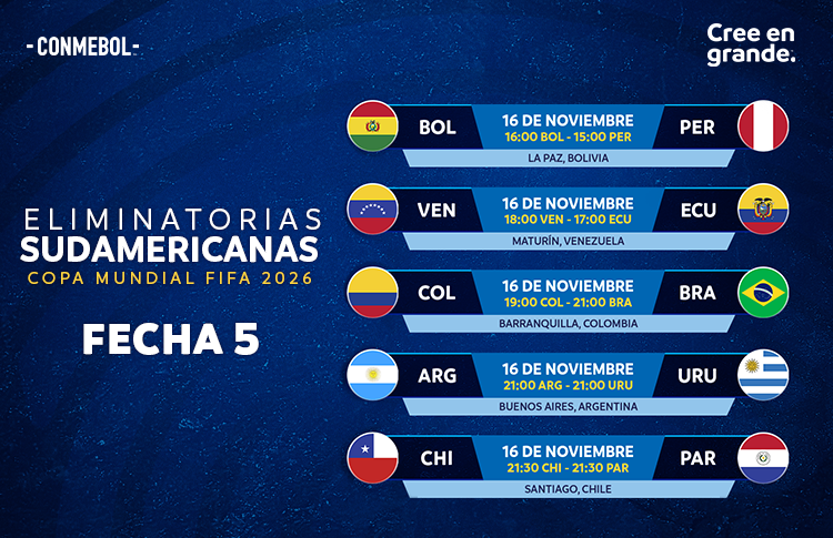 Comienza la jornada de partidos internacionales de Eliminatorias FIFA Sudamericanas. Puedes consultar los resultados y el calendario completo