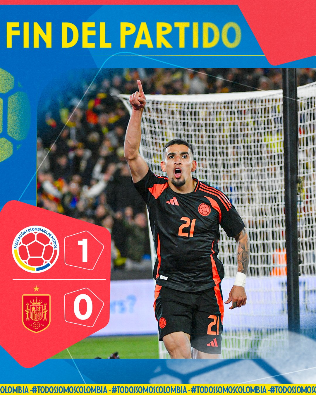 El único gol del partido lo marcó Daniel Muñoz en el minuto 61, con un espectacular remate acrobático tras un pase de Luis Díaz. Este triunfo histórico para la «Tricolor» marca una nueva victoria a un campeón del mundo en un partido amistoso. Algunos puntos destacados del partido: