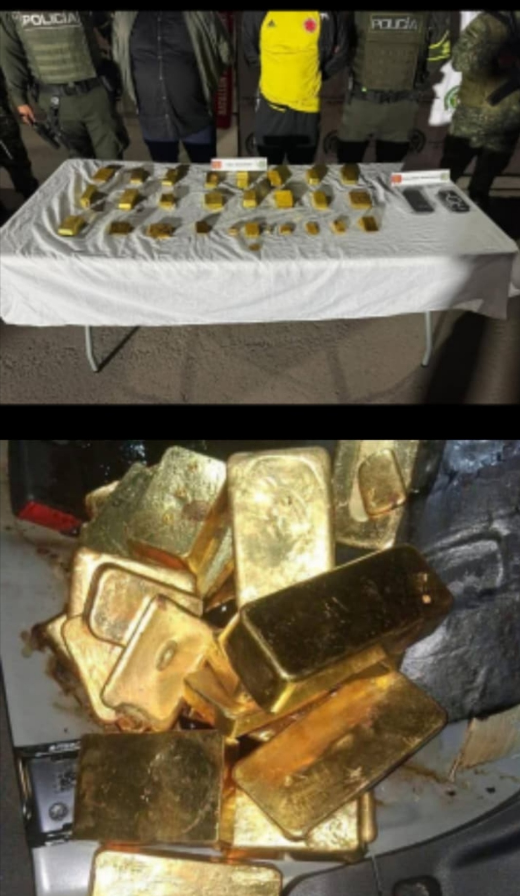 El Ejército Nacional y la Policía incautaron 42 kilos de oro valorados en más de 20.580 millones de pesos en el municipio de Pitalito, sur del Huila. El oro pertenecía presuntamente al grupo armado ilegal «Comandos de Frontera» y fue encontrado oculto en el tanque de gasolina de un automóvil particular.