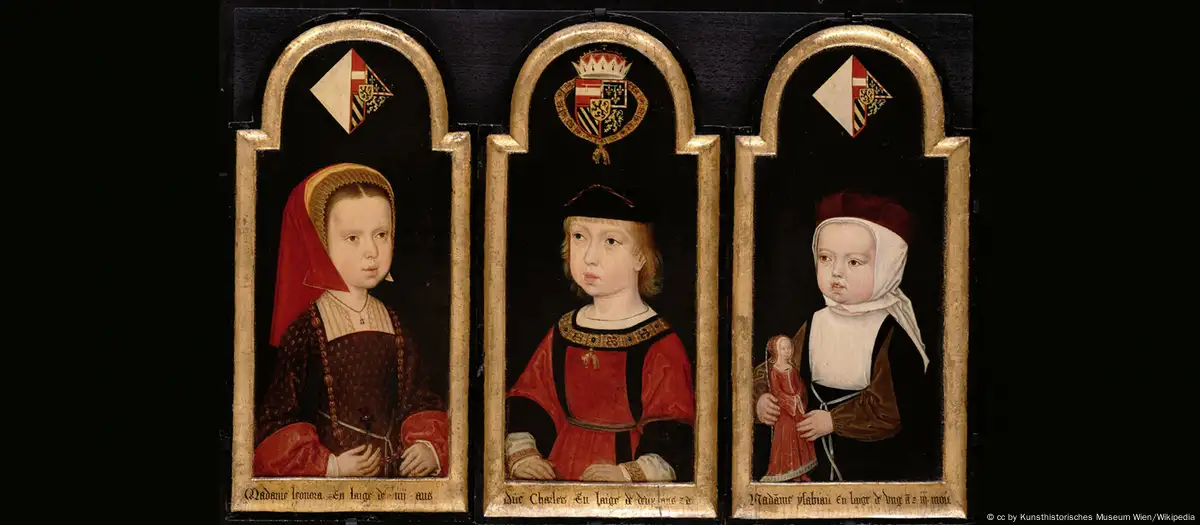 La tarea que Felipe I le dio al pintor fue explícita: sus hijas, Isabel y Leonor, debían estar a la izquierda y a la derecha de su hijo Carlos. Tenían que mostrar el vigor de la vida, no lucir pálidas ni enfermas. La pintura, concluida en 1502, fue reproducida varias veces y enviada a otras cortes reales; esta era una práctica frecuente en Europa para mostrar a las hijas como potenciales esposas.