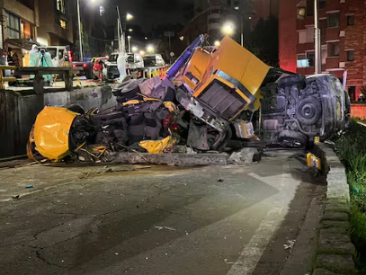 Una volqueta con cargamento (arena, según los reportes iniciales) aparentemente perdió el control — rompió la baranda de contención, invadió el carril contrario, embistió múltiples vehículos y finalmente cayó sobre varios de ellos, entre ellos el taxi de Clavijo.