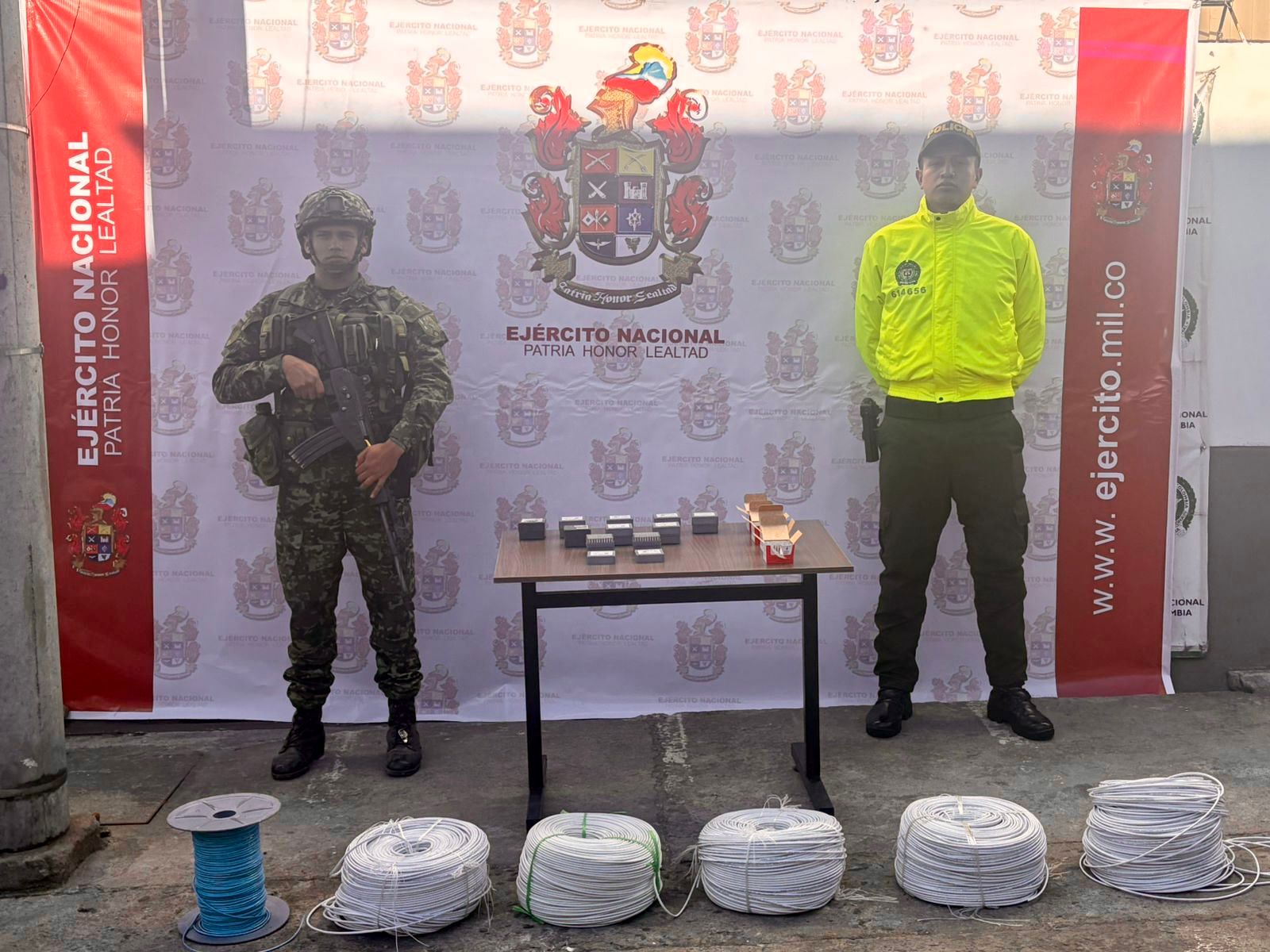 En una rápida reacción fueron desplegadas las tropas al lugar, logrando con ello la incautación de 2500 metros de mecha de seguridad, 300 metros de cordón detonante y 1.400 detonadores aneléctricos, los cuales, al parecer serían propiedad del grupo armado organizado Comuneros del Sur, quienes adelantan actividades ilegales en el sector.