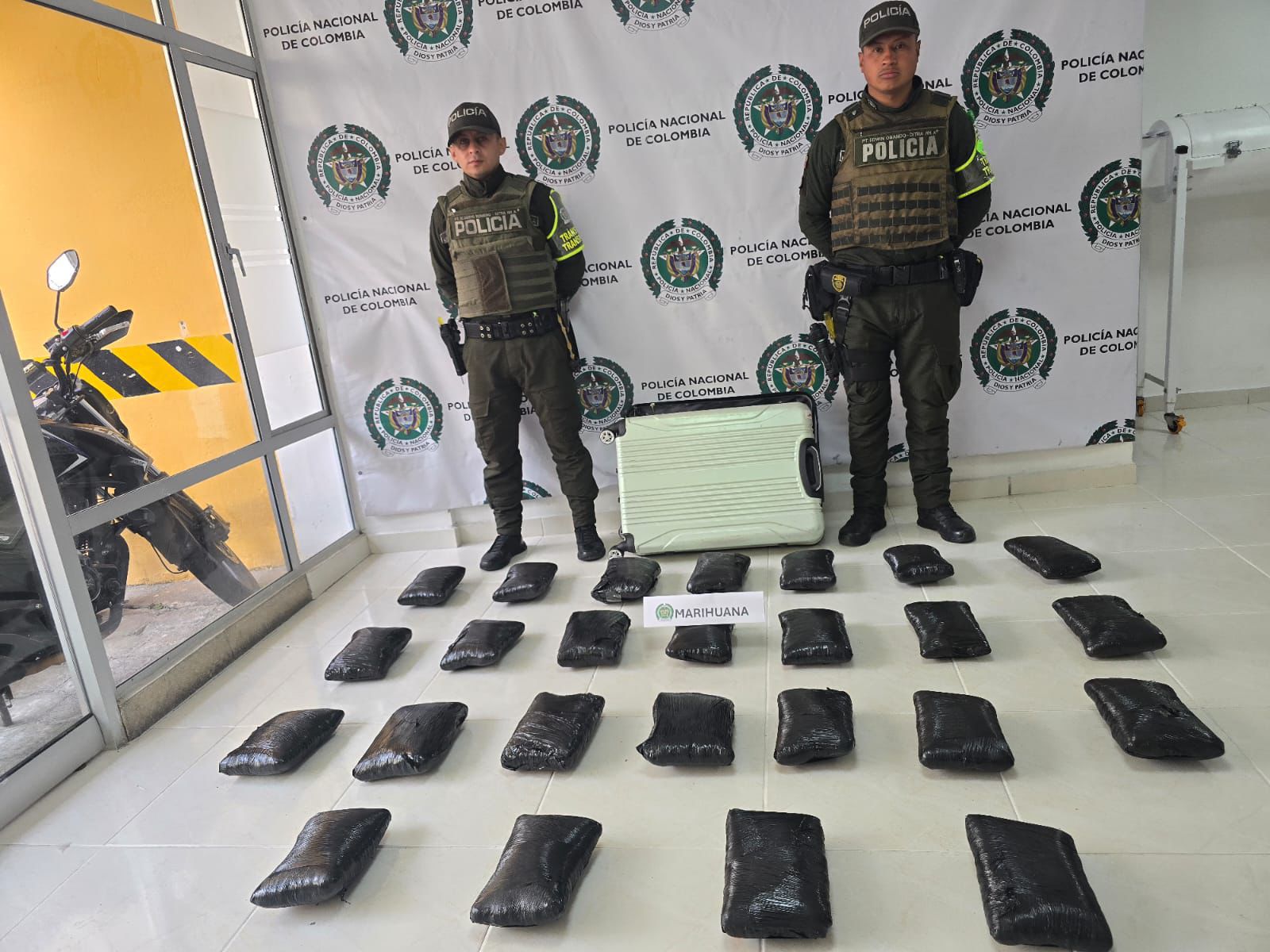 El operativo se adelantó a la altura del sector El Placer, donde uniformados realizaron labores de registro y control. En la bodega de equipaje del vehículo fue hallada una maleta de color blanco que contenía 25 paquetes con la sustancia ilícita.