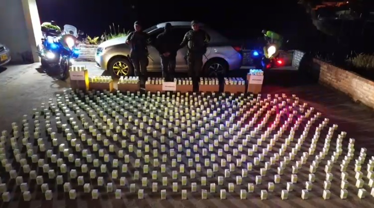 La acción policial se desarrolló sobre la vía Junín–Pedregal, a la altura del municipio de Imués, donde fue interceptado un vehículo particular que transportaba el cargamento oculto en cajas cubiertas con bolsas negras, ubicadas en el baúl y la parte trasera del automotor.
