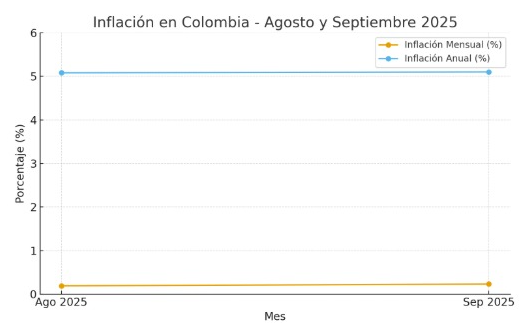 La inflación en Colombia se mantiene estable en septiembre de 2025, con una proyección de variación mensual del Índice de Precios al Consumidor (IPC) de 0,23%, similar al 0,24% registrado en septiembre de 2024 y superior al 0,19% de agosto.