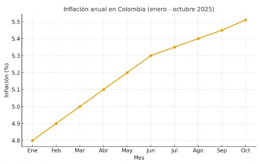 El Departamento Administrativo Nacional de Estadística (DANE) informó que la inflación en Colombia llegó al 5,51 % anual durante octubre de 2025, marcando el incremento más pronunciado en más de doce meses.