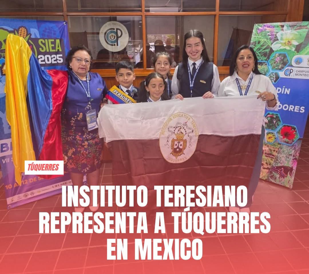 El Instituto Teresiano de la ciudad de Túquerres está representando con orgullo a su municipio en un importante encuentro en México. Los mejores deseos a la rectora Fabiola Caicedo y a sus estudiantes, quienes llevan el nombre de la institución y del municipio a nivel latinoamericano.