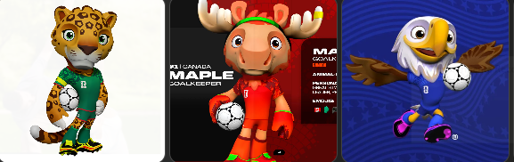 Clutch, un águila calva, será la embajadora de Estados Unidos. Representa fuerza, liderazgo y el espíritu competitivo del país. Zayu, un jaguar lleno de energía, encarna la riqueza cultural de México y simboliza velocidad y determinación. Finalmente, Maple, un alce canadiense, se presenta como guardián creativo y resiliente, reflejando la naturaleza y diversidad de Canadá.