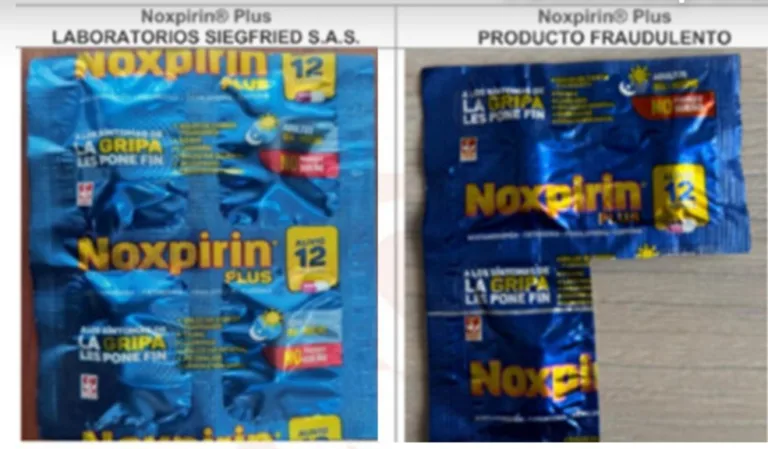 lote falsificado de Noxpirin está circulando en el mercado. El Instituto Nacional de Vigilancia de Medicamentos y Alimentos (Invima) encendió las alarmas tras detectar en el país la comercialización ilegal de un lote falsificado del medicamento Noxpirin Plus cápsula, identificado como Lote 15890724 – FV 07/2026, el cual representa un riesgo para la salud.