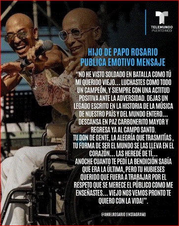 «Se me parte el alma saber que ‘El Carbonerito’, ese guerrero incansable de la tarima, ya no está con nosotros físicamente. Papo fue pura energía, un caballero dentro y fuera del escenario…»