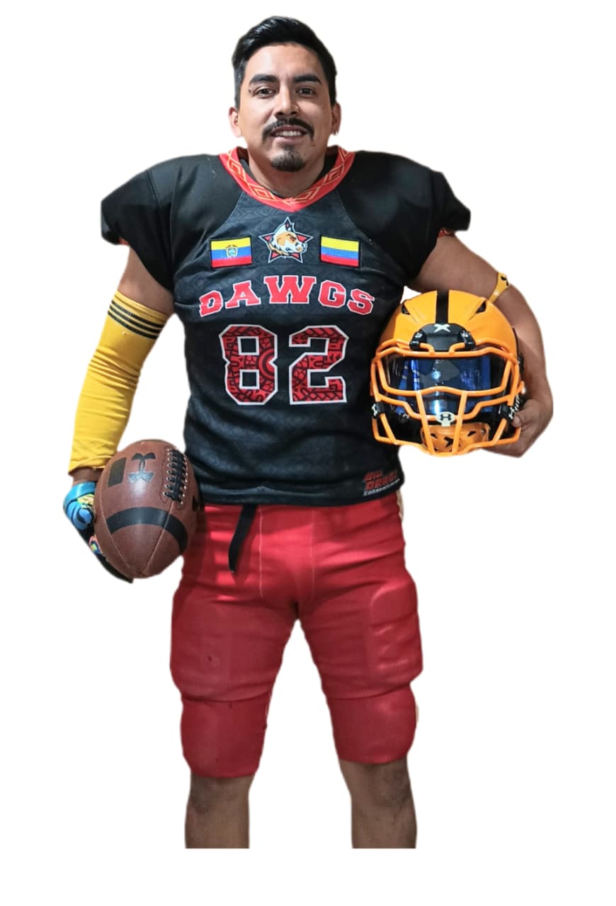 El deportista practicante del fútbol americano, Alejandro Vallejo, se alista para estar presente en la final de la Liga Ecuatoriana de Football Americano jugando con el equipo Big Dawgs Football Team de la ciudad de Quito.