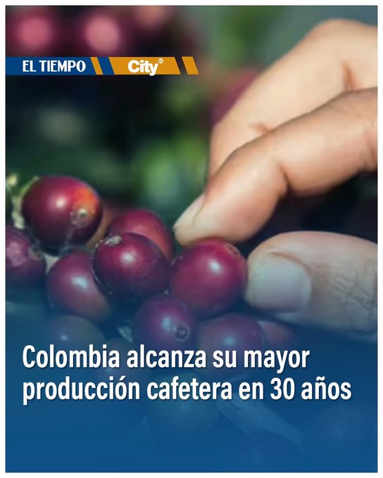 Colombia, reconocida mundialmente como tierra cafetera, alcanzó en el último año cafetero (octubre 2024 – septiembre 2025) su mayor producción en tres décadas, con 14,8 millones de sacos de 60 kilos, lo que representa un crecimiento del 17 % frente al periodo anterior, equivalente a más de dos millones de sacos adicionales.