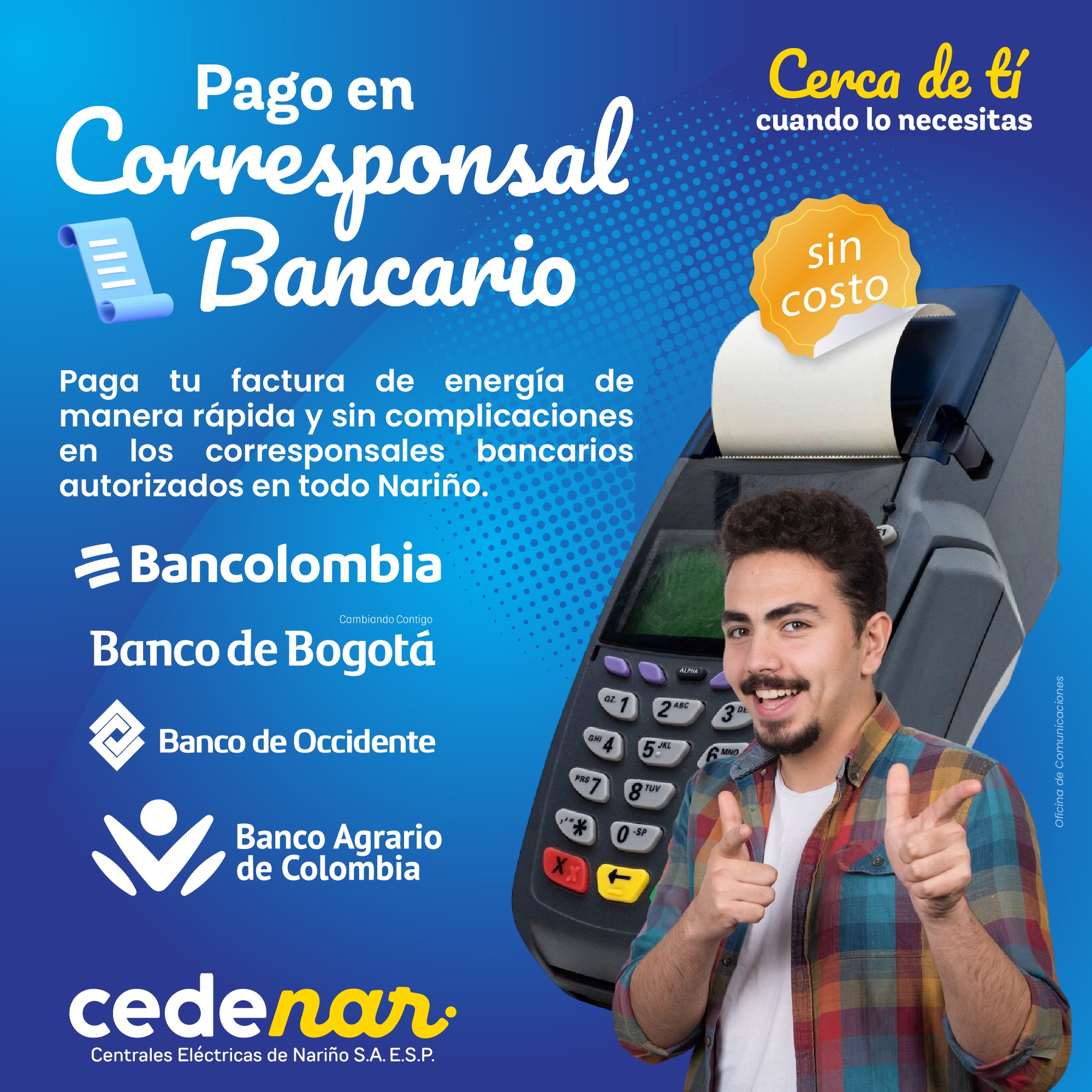 Los pagos pueden realizarse en los corresponsales bancarios autorizados en cualquier municipio del departamento, sin generar costos adicionales. También está habilitada la opción de pago digital con PSE en el portal oficial 👉🏼 www.cedenar.com.co
