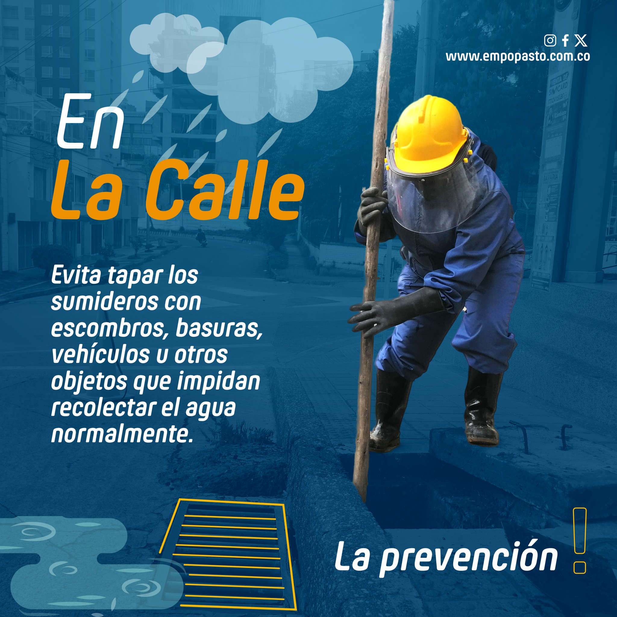 La Empresa de Obras Sanitarias de Pasto EMPOPASTO S.A. E.S.P. y la Alcaldía de Pasto insisten en que mantener limpias las calles, evitar arrojar basura o escombros a los sumideros y sacar los residuos en los horarios establecidos son pasos sencillos pero fundamentales para prevenir emergencias.