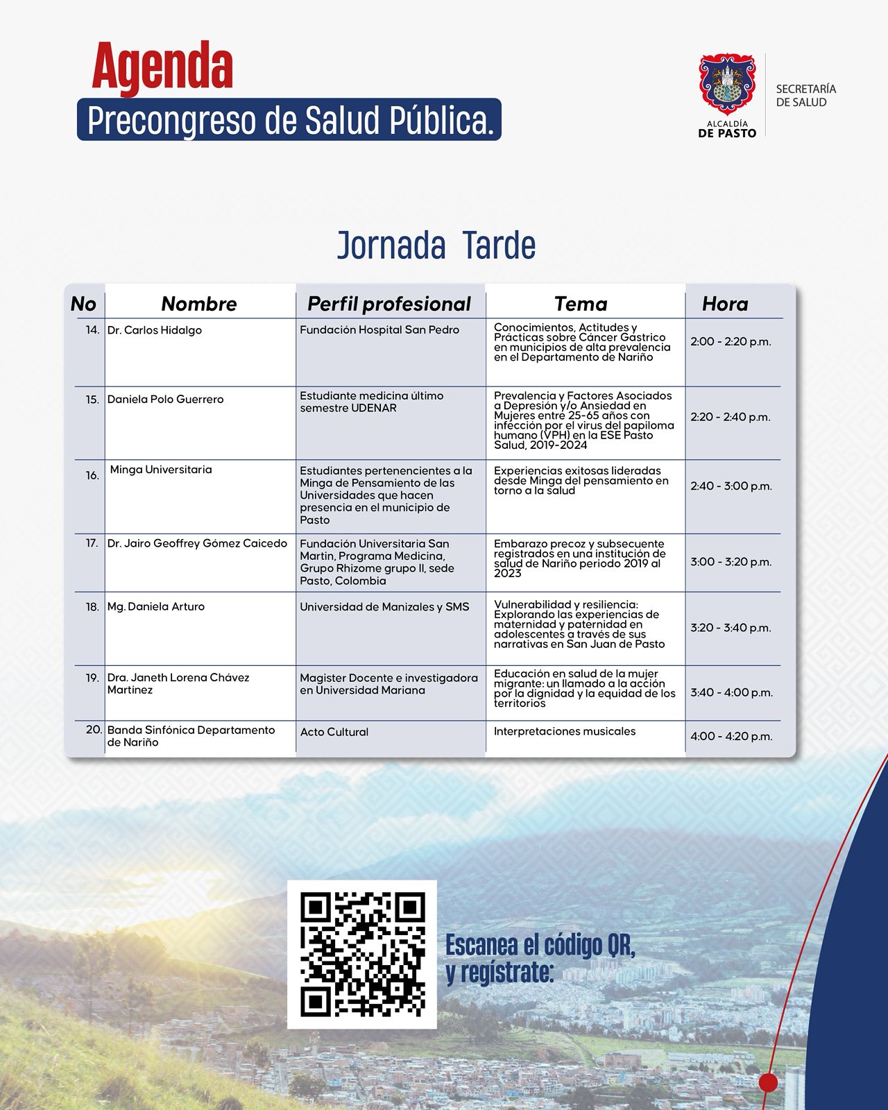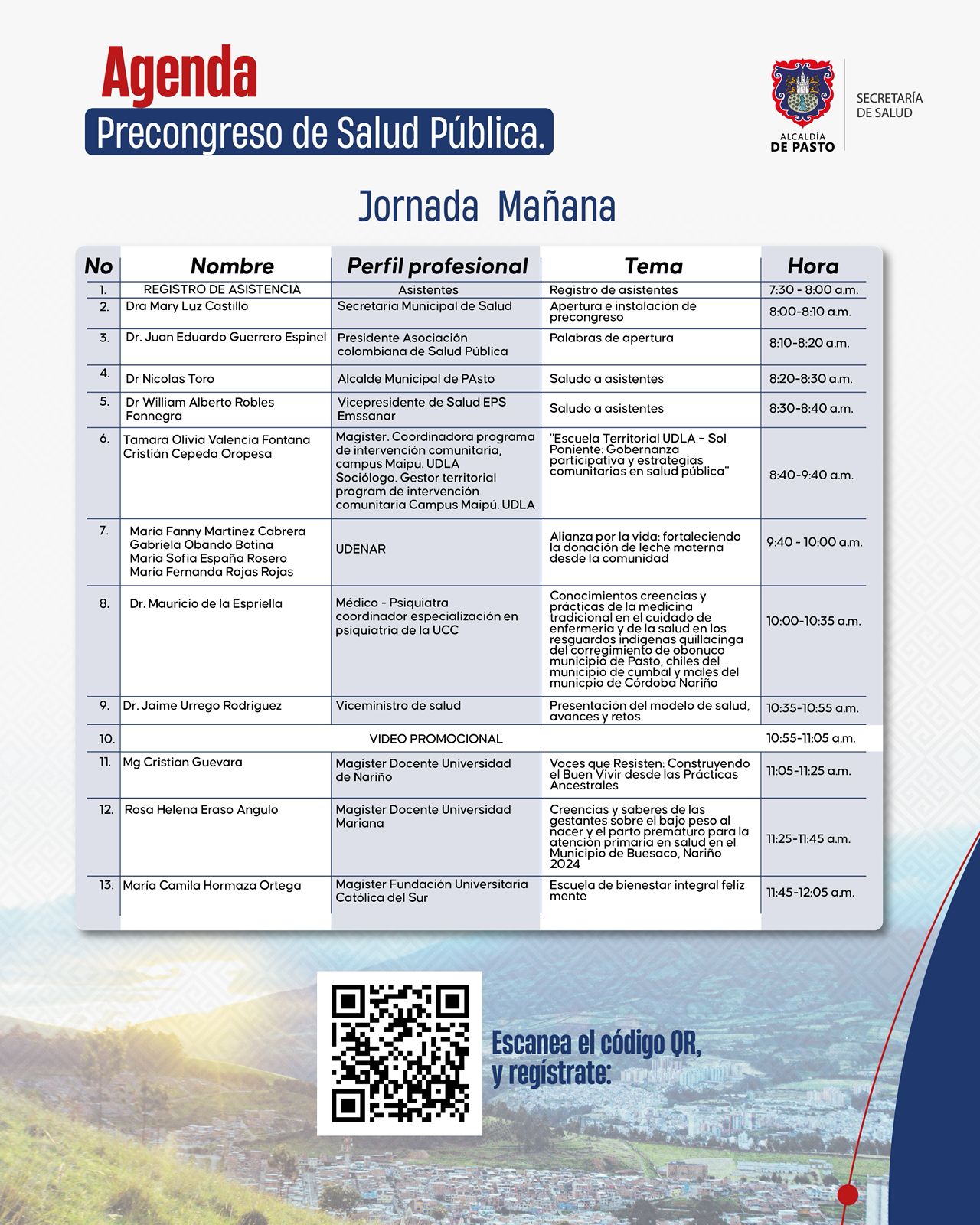 A partir del 19 de septiembre de 2025, Pasto será sede del Precongreso Nacional de Salud Pública, un espacio estratégico de encuentro entre autoridades, academia, profesionales de la salud y comunidades para dialogar sobre los principales retos y propuestas que enfrenta el país en materia de salud pública.