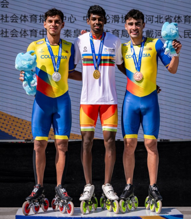 , Anandkumar Velkumar, hizo historia en el patinaje mundial al ser el primer representante de este país en ganar una maratón. Velkumar sorprendió a los colombianos Lenis y Mantilla y los venció en la línea de sentencia tras 58 minutos, 29 segundos y 747 milésimas de competencia.