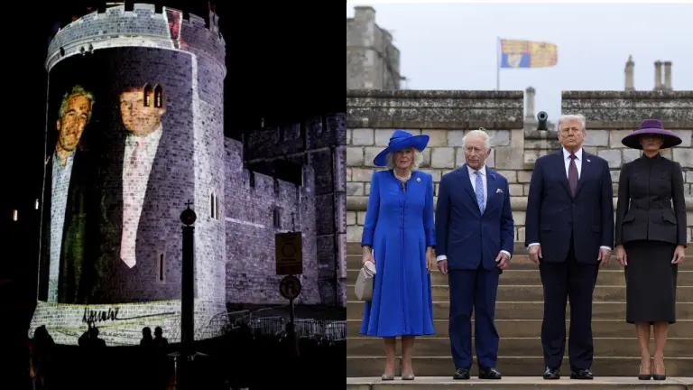 El 17 de septiembre de 2025, durante la visita de Estado del presidente de Estados Unidos, Donald Trump, al Reino Unido, se vivió un incidente inesperado: activistas proyectaron imágenes suyas junto al condenado por delitos sexuales Jeffrey Epstein en el castillo de Windsor.