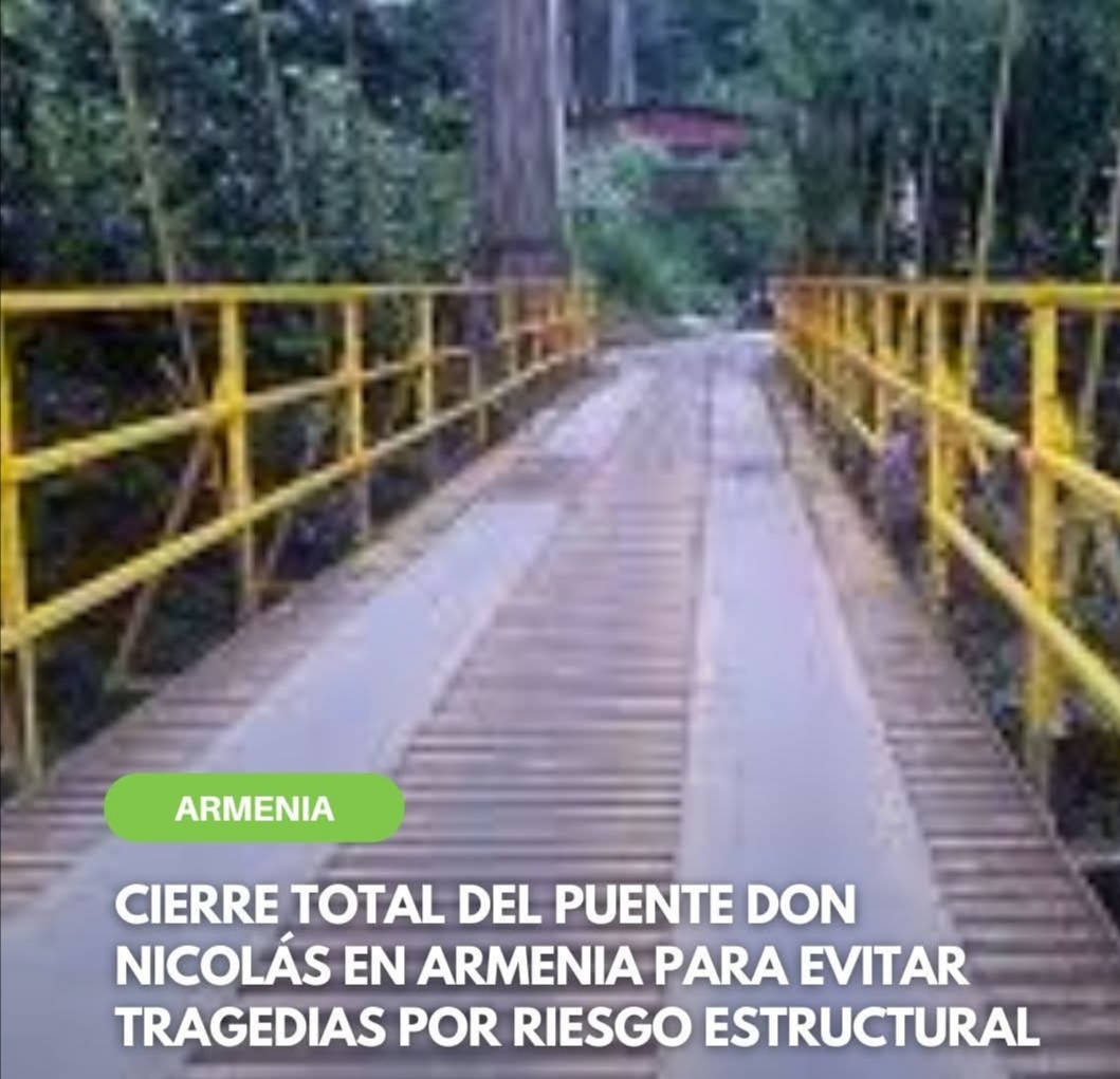 La Alcaldía de Armenia ordenó el cierre total del puente Don Nicolás debido a riesgos estructurales significativos que ponen en peligro la vida y la integridad de los ciudadanos. La medida se aplica a partir del 11 de octubre de 2025, y cualquier conductor que incumpla la restricción enfrentará sanciones, incluyendo multas y la inmovilización del vehículo.