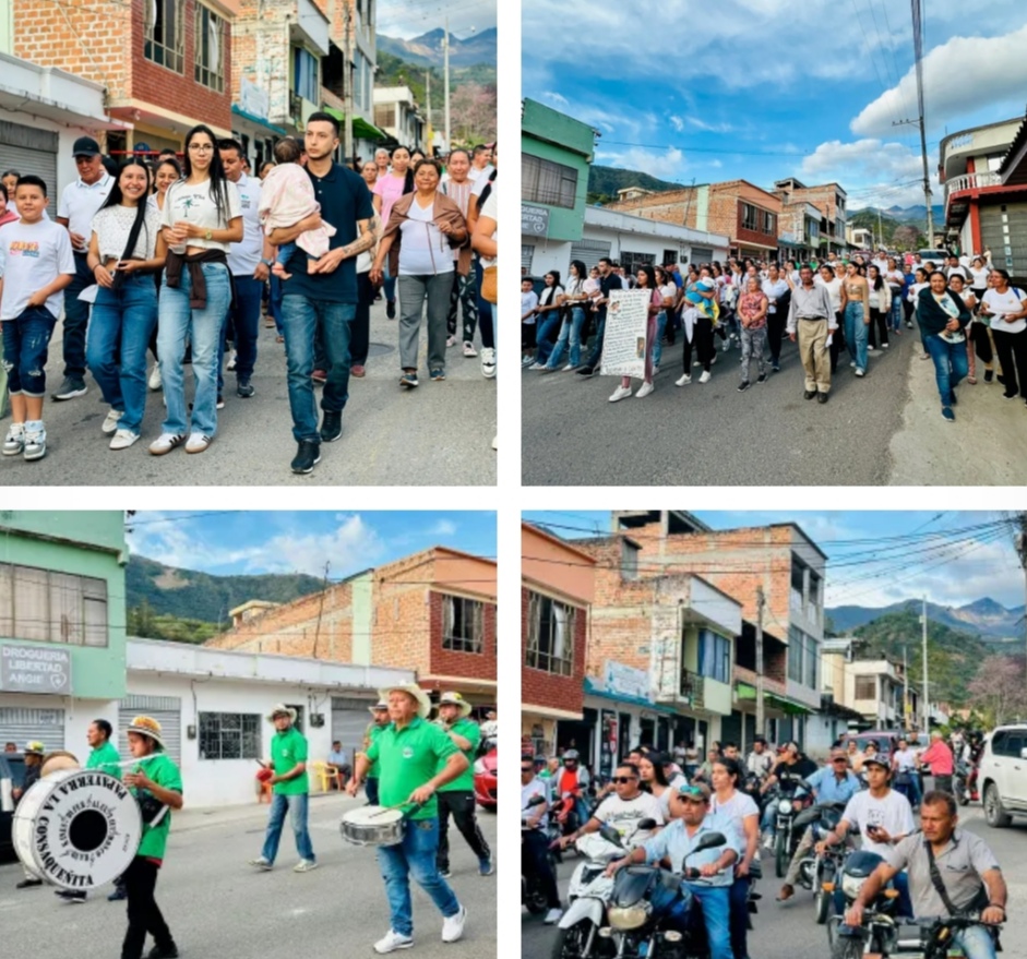 Decenas de personas se reunieron en el sector del cementerio parroquial para saludar al soldado y acompañarlo en un desfile hasta el templo de Nuestra Señora del Tránsito, donde se celebró una Eucaristía en acción de gracias por su vida y libertad. La Papayera la Consaqueñita acompañó el desfile con música tradicional, llenando el ambiente de alegría y celebración.