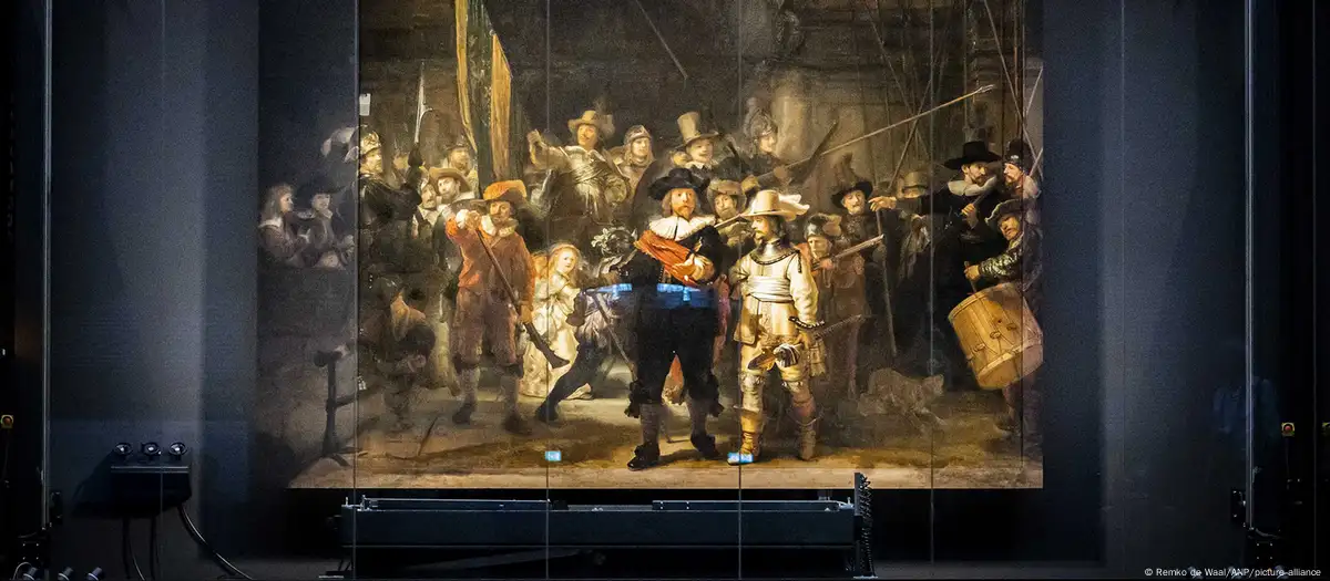 «Vi un perro de repente en la imagen que aparece en la portada de un libro mientras caminaba por la sala. Pensé de inmediato en La ronda de noche. «Era excesivamente similar», explicó Lenders en una entrevista con EFE.
