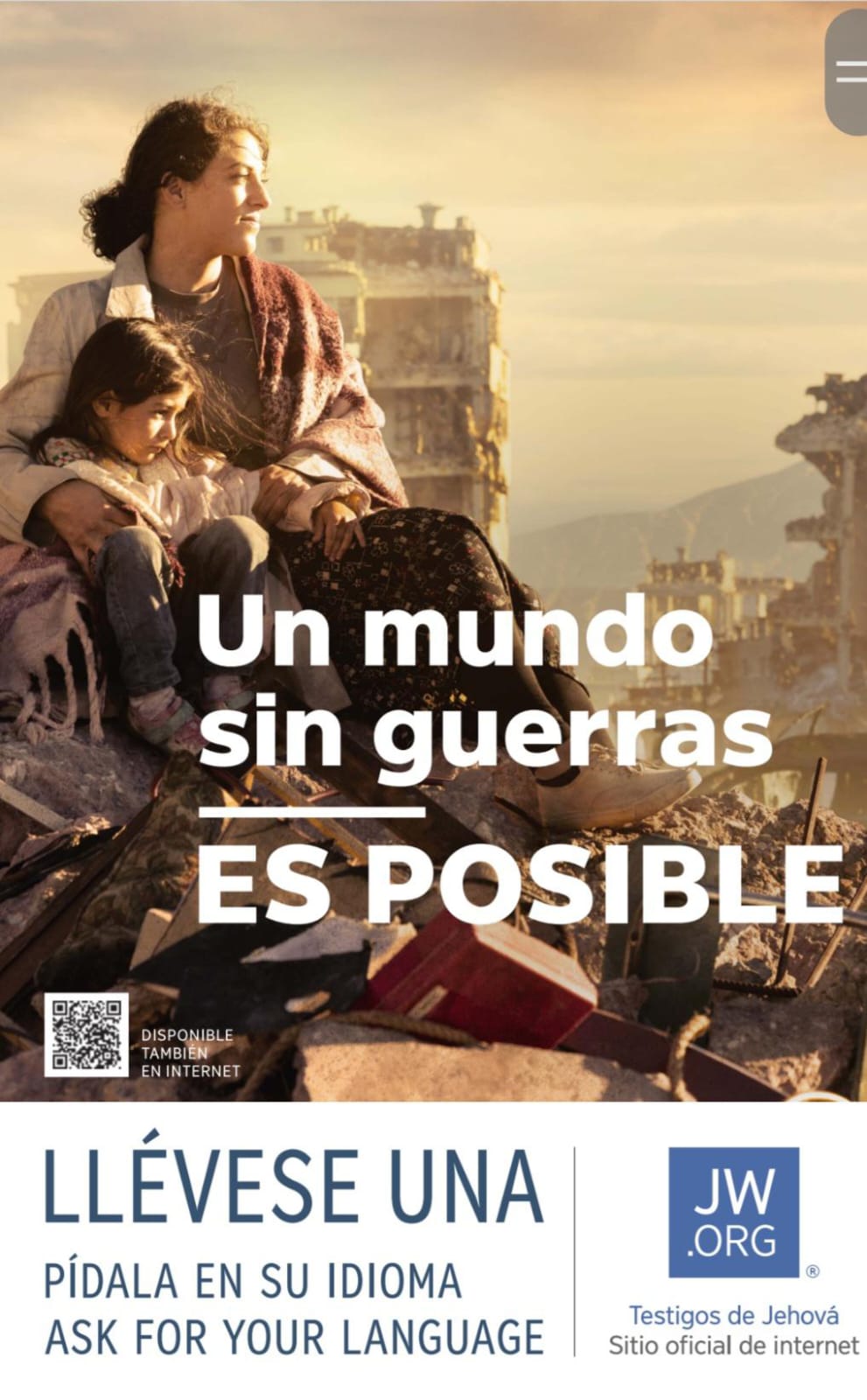Más de 9 millones de voluntarios de los Testigos de Jehová lanzarán una campaña mundial en septiembre para ofrecer una solución basada en la Biblia para poner fin a todas las guerras. La iniciativa se centrará en la distribución de la revista «La Atalaya» No. 1 de 2025, titulada «Un mundo sin guerras es posible»,https://www.jw.org/…/guerras-y-conflictos-nos-afectan/ que aborda temas como las causas de las guerras y conflictos armados, la posibilidad de un mundo sin violencia y cómo encontrar paz en medio de la adversidad.