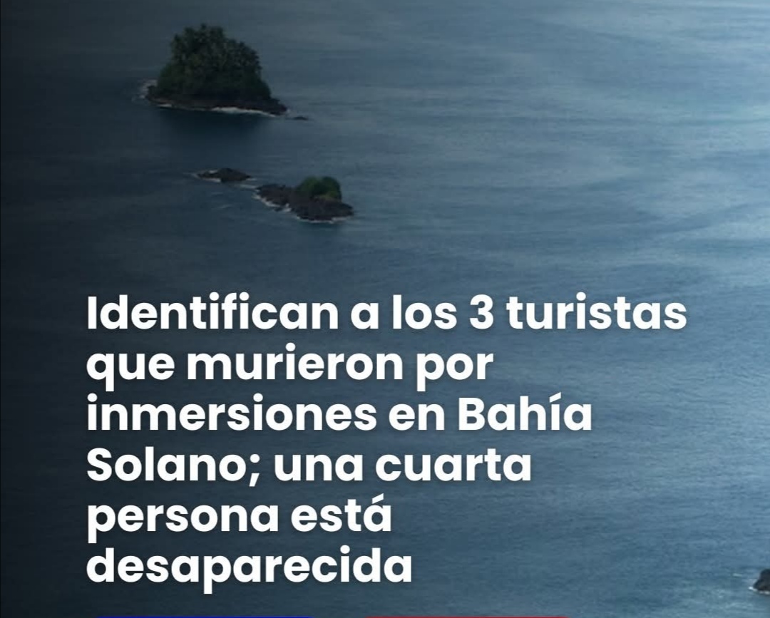 Una tragedia ocurrió en la playa de Bahía Solano, Chocó, donde tres turistas murieron ahogados y una cuarta persona permanece desaparecida. Las víctimas fueron identificadas como Edinson Palacios Mosquera, Nicolás Fernández y Ana María Salazar.