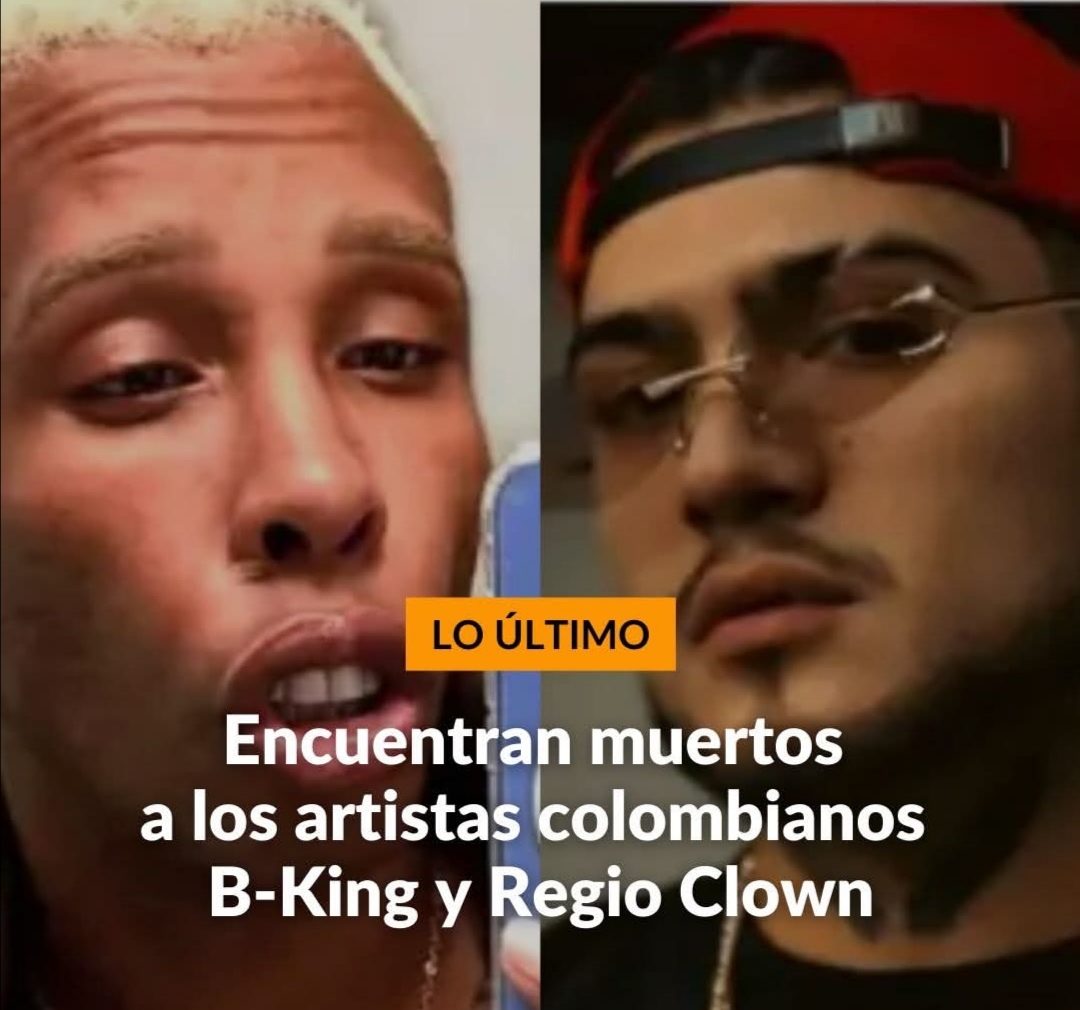 Los cantantes colombianos B King y Regio Clown fueron encontrados sin vida en el Estado de México después de estar desaparecidos durante seis días. Sus cuerpos fueron localizados el 22 de septiembre de 2025, y la Fiscalía del Estado de México confirmó que están realizando pruebas para identificar plenamente los cuerpos.