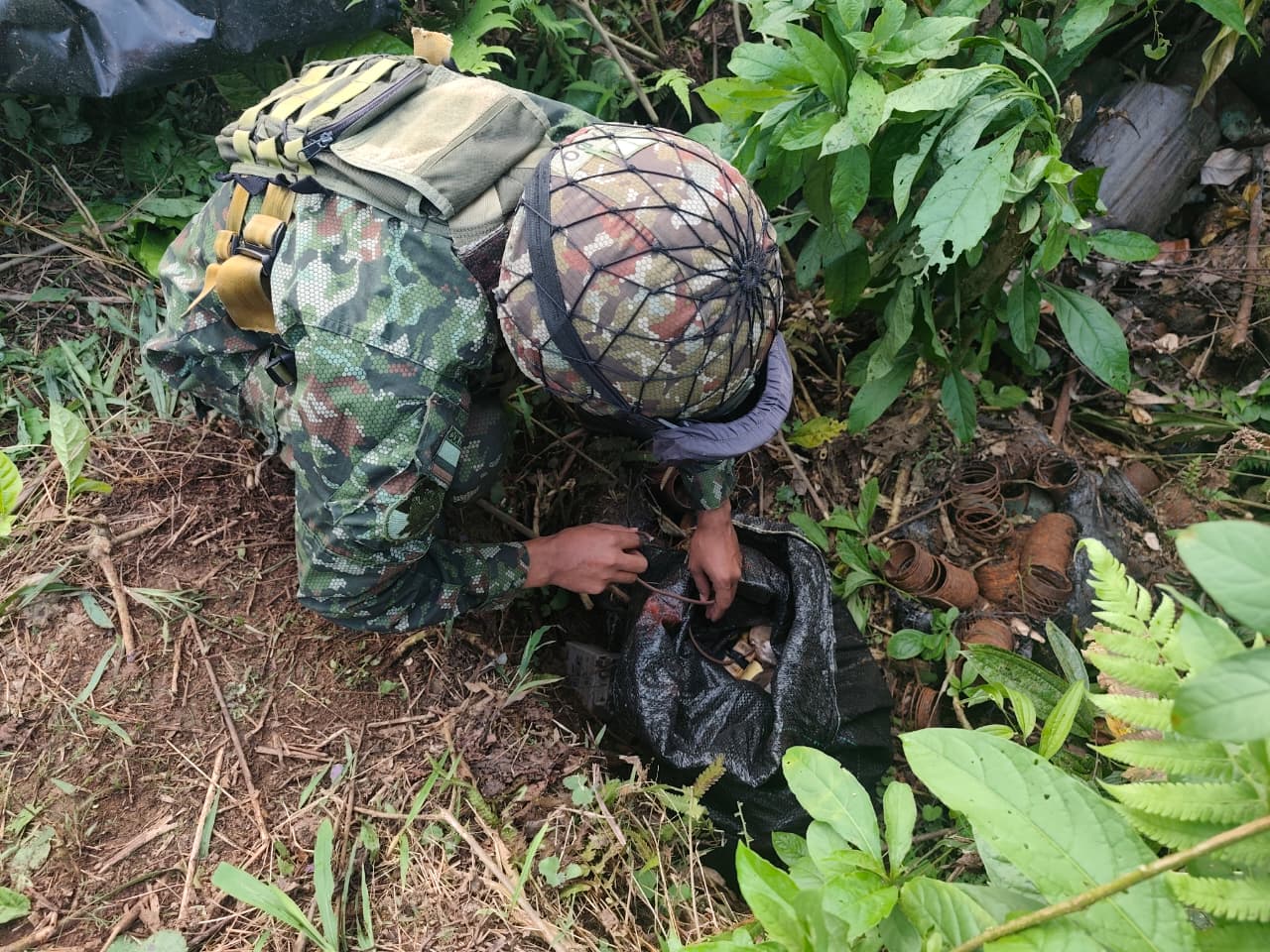 En el marco del Plan de Campaña Ayacucho Plus, tropas del Batallón de Selva N.° 53, orgánicas de la Fuerza de Tarea Hércules, lograron la ubicación y destrucción de un depósito ilegal con explosivos perteneciente, según información de inteligencia militar, al grupo armado organizado residual Coordinadora Nacional Ejército Bolivariano, estructura Iván Ríos, organización que insiste en la fabricación y empleo de artefactos explosivos improvisados como método para la conducción de acciones bélicas criminales.