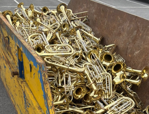 Una escuela de música tira varias trompetas a un contenedor y desata la indignación de los vecinos: “Han pasado por las manos de generaciones enteras de estudiantes