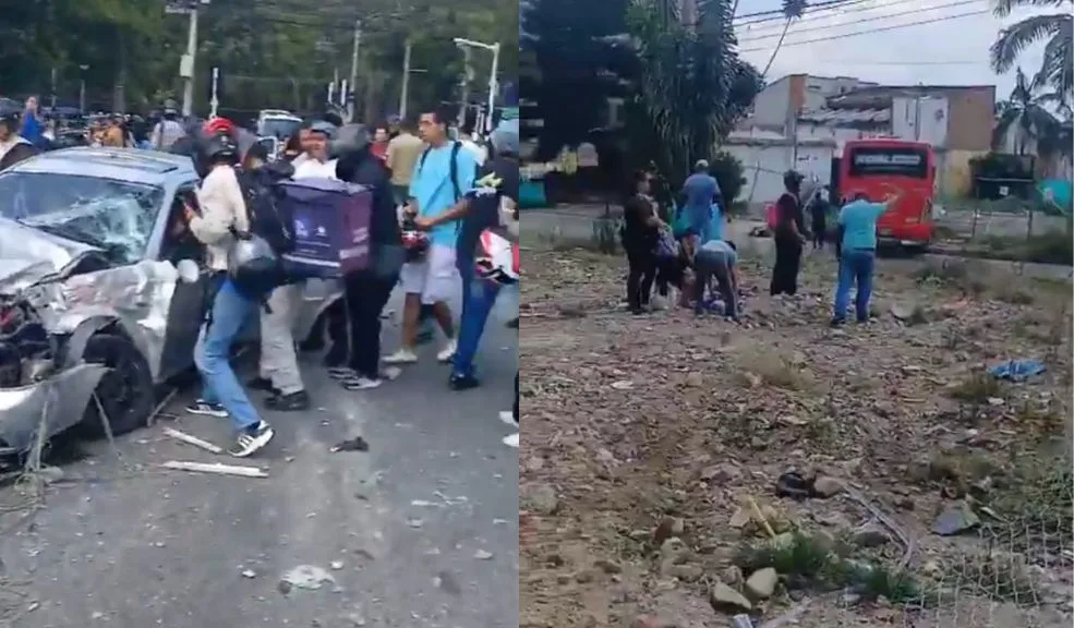 La escena fue registrada en múltiples videos grabados por ciudadanos, que dan cuenta de la dimensión de la colisión y de los primeros momentos de la emergencia. En las imágenes se observa la volqueta detenida tras impactar varios vehículos y un poste, así como a personas de la comunidad intentando auxiliar a los heridos atrapados.