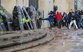 Vandalismo en el CAI de Avenida Chile (Chapinero) Durante las protestas a favor de Palestina, encapuchados rompieron vidrios del CAI de la Policía en la Avenida Chile y pintaron consignas alusivas al conflicto. Ataque al CAI de la Calle 72 con Carrera Séptima En otra jornada de manifestaciones pro-Palestina, el CAI de la Calle 72 fue atacado por encapuchados. También hubo enfrentamientos con la fuerza pública, uso de objetos contundentes. Vandalismo de locales comerciales durante protestas En la misma movilización, se reportó que un local Starbucks en la Calle 72 fue impactado por piedras varias veces; su fachada fue grafiteada con mensajes como «PALESTINA LIBRE». Grafitis en edificios residenciales en el norte En una protesta estudiantil en la Universidad Pedagógica, encapuchados realizaron grafitis en edificios y conjuntos residenciales, con mensajes como “Muerte al burgués”. Afectaron movilidad, hubo bloqueo de vías principales.
